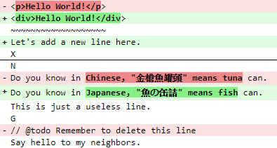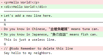Say hello to my neighbors.About the Context diff format: https://en.wikipedia.org/wiki/Diff#Context_format